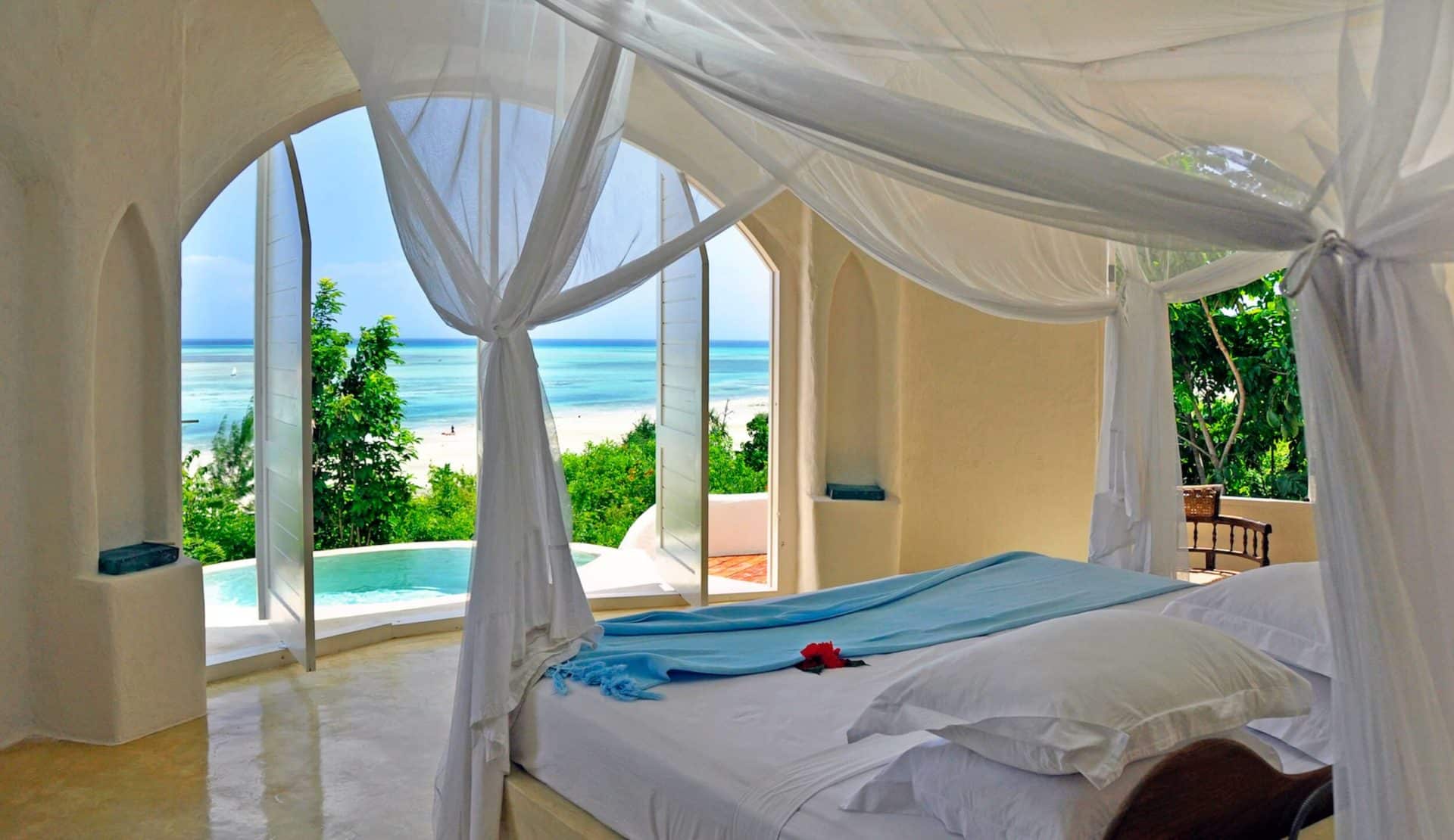 Schlafzimmer mit Meerblick – Elewana Kilindi Sansibar, Tansania © Silverless / Elewana Collection